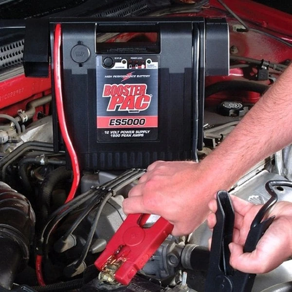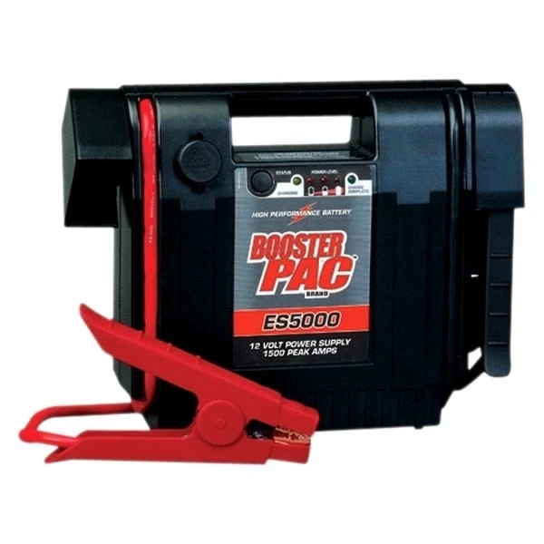 12 V Portable Battery Jump Starter (ES5000) by Solar®. Bring on the power! With a high performance battery and up to 1500 Peak A, the ES5000 is the Booster PAC for professionals who need serious starting power. Multiple jumps between charges and 43″ cables make the ES5000 as convenient as it is powerful.