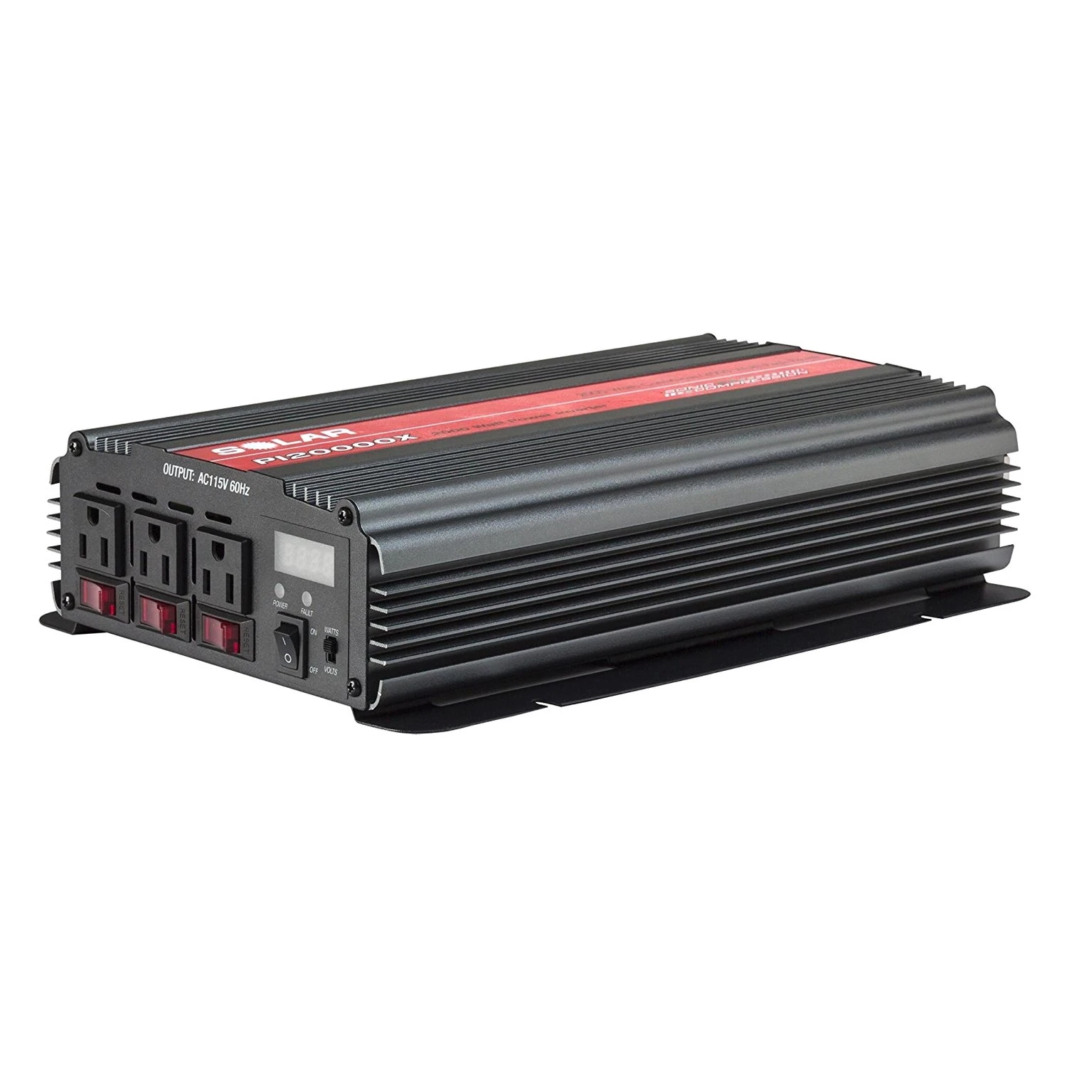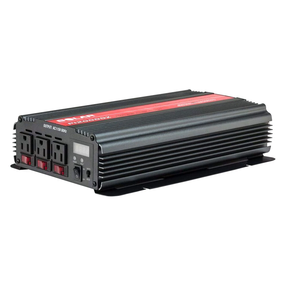 PI Series 2000W 12 DC 120 AC Modified Sine Wave Power Inverter by Solar®. SOLAR industrial power inverters, featuring Sonic Compression Technology™, deliver clean, reliable power from a 12 Volt power source to a wide variety of power equipment and appliances. Peak Power Ratings meet the initial load requirements when starting tools and appliances. Sonic Compression Technology ensures stable power delivery throughout the operating range of the inverter.