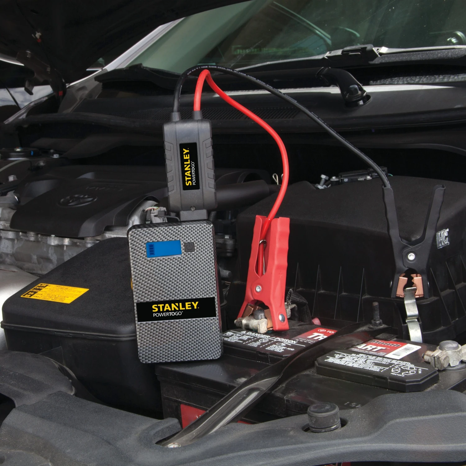 POWERTOGO™ 12 V Portable Lithium Jump Starter and Power Bank with Flashlight by Stanley Tools®. Get portable starting power with the Stanley POWERTOGO Lithium Jump Starter. It’s capable of firing up vehicles up to and including V6-powered cars and trucks, with a built-in LED worklight and a USB power bank for your personal electronics.