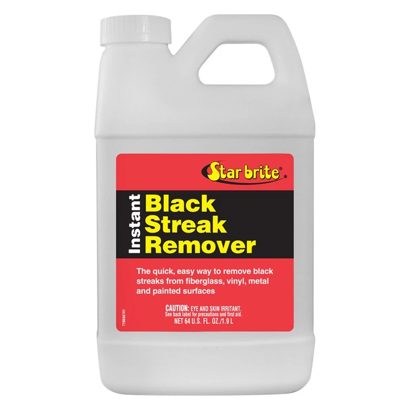 Instant™ Black Streak Cleaner (1 Piece) by Star Brite®. Black Streak Remover begins working on contact to eliminate black streaks under rubrails or anywhere else on the boat. In addition to being the best way to get rid of black streaks, this product is a great all-around cleaner for all marine surfaces and around the house. Ideal for use to remove black streaks or grime from Fiberglass/Glass, metal, plastic, rubber, vinyl or painted surfaces.