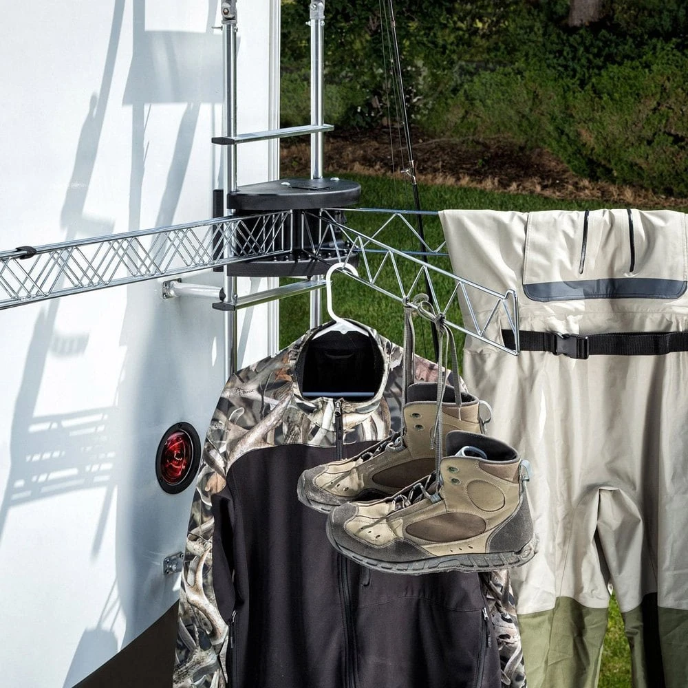 Extend-A-line Stainless Steel 17′ Drying Rack (CL-36) by Stromberg Carlson®. The Extend-A-Line is designed to be mounted to 1″ – 1.5″ diameter exterior ladders with 9.5/8″ – 10.1/8″ spacing between upright tubing. Easily mounts to a 1″ or 1.5″ exterior ladder or can be wall, bumper or A-frame mounted if no ladder is available (with available additional acccessories).