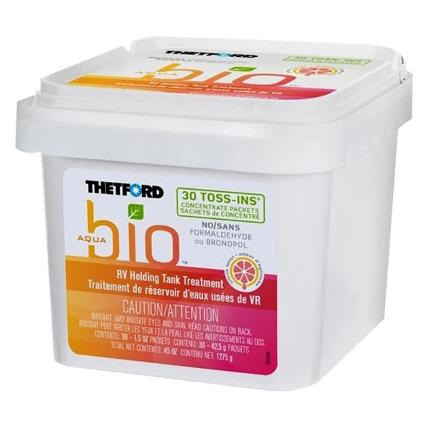 AquaBio™ 2.8 oz. Citrus Treatment & Deodorant (30 Pieces) (96591) by Thetford®. Are you still in search of a perfect product to take care of and protect your home on wheels? We have the right solution for you. This product was developed especially for the needs of RV owners. It’s effective in application and simple in use. Fabricated using superior-grade materials, this product is meant to make your RV cozy, safe, and comfortable like your usual dwelling.