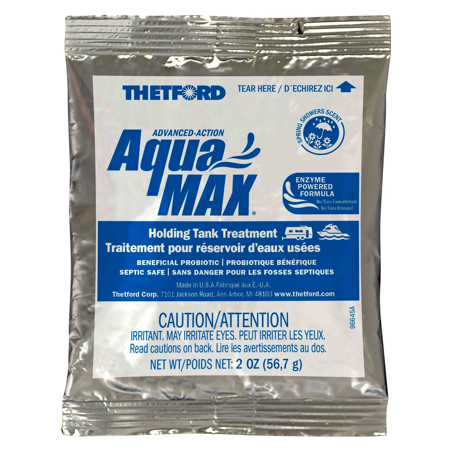 AquaMax™ 2 oz. Spring Showers Holding Tank Treatment (8 Pieces) (96633) by Thetford®. AquaMax™ Holding Tank Treatment’s advanced enzyme powered formulas neutralize odors and accelerate waste digestion to prevent clumping, clogging and tank residue, all at the same time.
