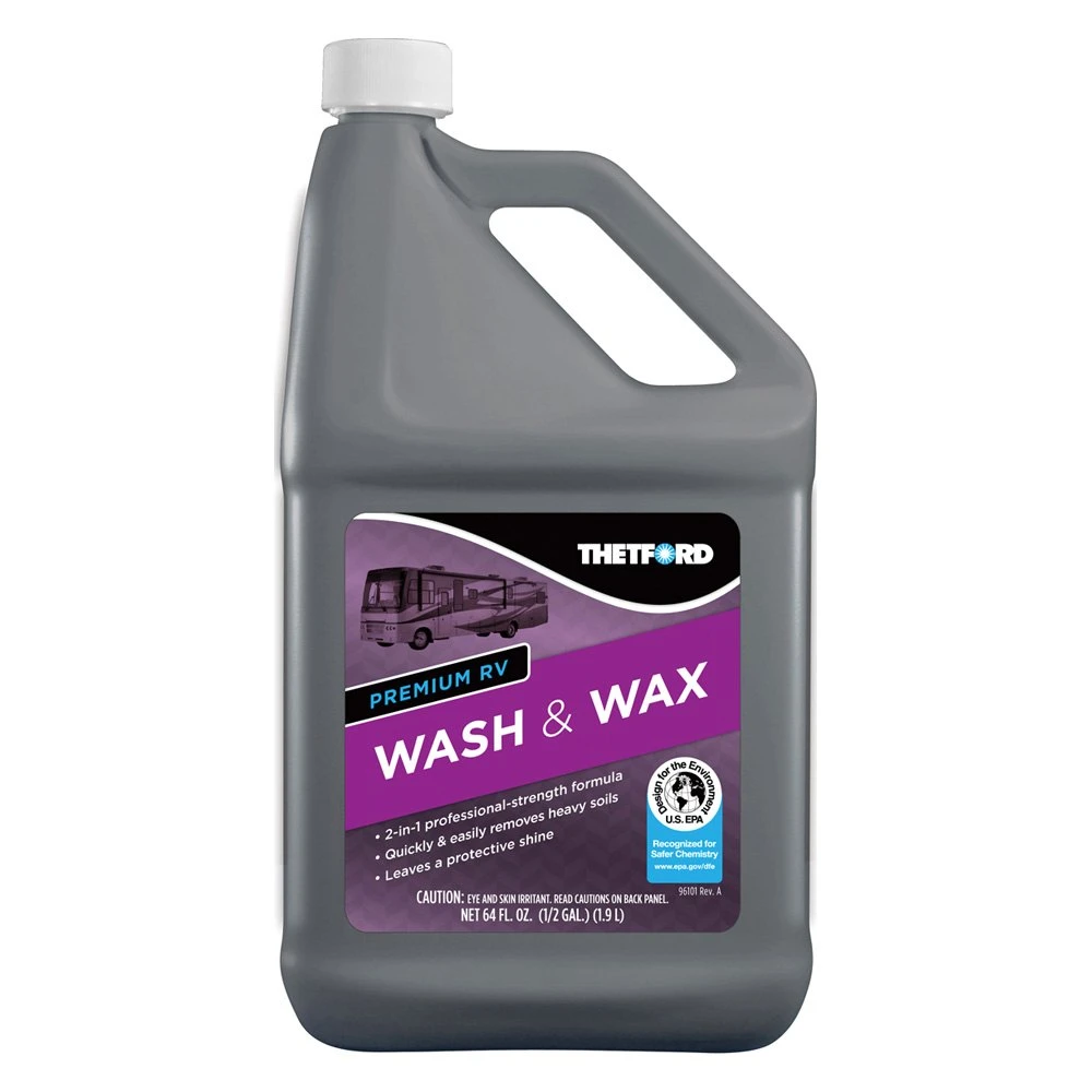 Premium™ Wash Cleaner with Wax (1 Piece) by Thetford®. This formula is a convenient wash and wax in one, cleaning while leaving a protective shine. Removes the toughest soils such as dirt, road film, dried on bugs, bird droppings and more.