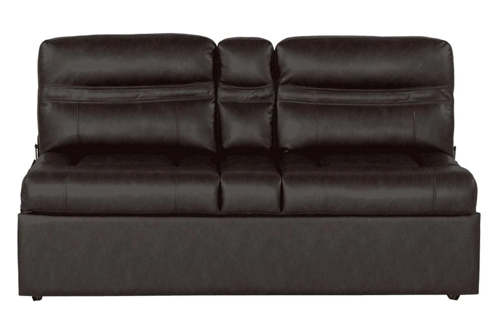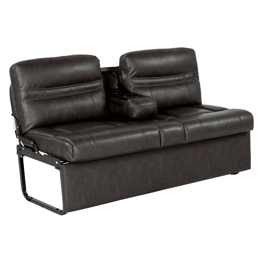 62″ Millbrae Jackknife RV Sofa with Kickboard (2020129834) by Thomas Payne®. Your front row seat to adventure just got cozier. Perfect for 5th wheels, travel trailers, and motorhomes alike, the Jackknife Sofa gives you a stylish sitting space by day, and extra sleeping area by night. In one simple motion, this low maintenance sofa can transition to a bed and back again. Featuring a fold-down center with cupholders, this camper sofa offers functionality, comfort, and style, so you can travel luxuriously, no matter where your adventures take you.