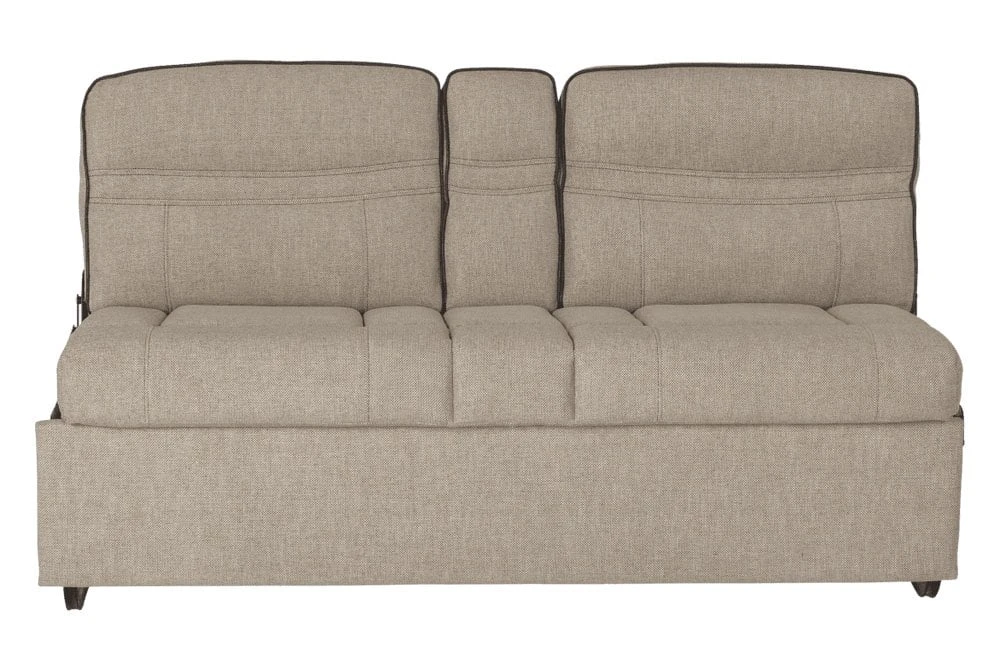 62″ Norlina Jackknife RV Sofa with Kickboard by Thomas Payne®. Your front row seat to adventure just got cozier. Perfect for 5th wheels, travel trailers, and motorhomes alike, the Jackknife Sofa gives you a stylish sitting space by day, and extra sleeping area by night. In one simple motion, this low maintenance sofa can transition to a bed and back again. Featuring a fold-down center with cupholders, this camper sofa offers functionality, comfort, and style, so you can travel luxuriously, no matter where your adventures take you.