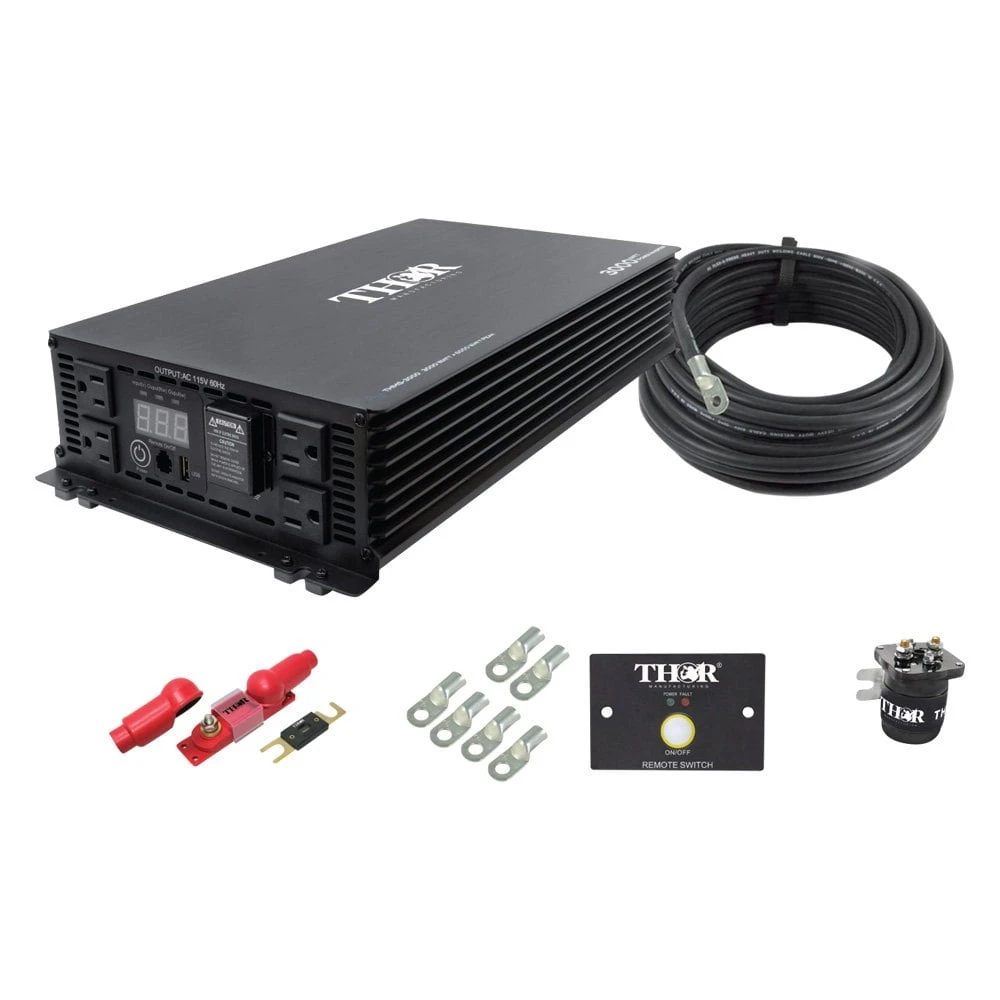 3000W Modified Sine Wave Inverter Kit by Thor®. Get the power for your RV when miles away from the civilization with this high-end device. The ultimate in convenience and value, this is a practical solution for just about any RVer. Built to tackle just about anything your rugged adventures can throw at it, this product is made from top-notch materials to ensure reliable, hassle-free functionality for many adventures to come.