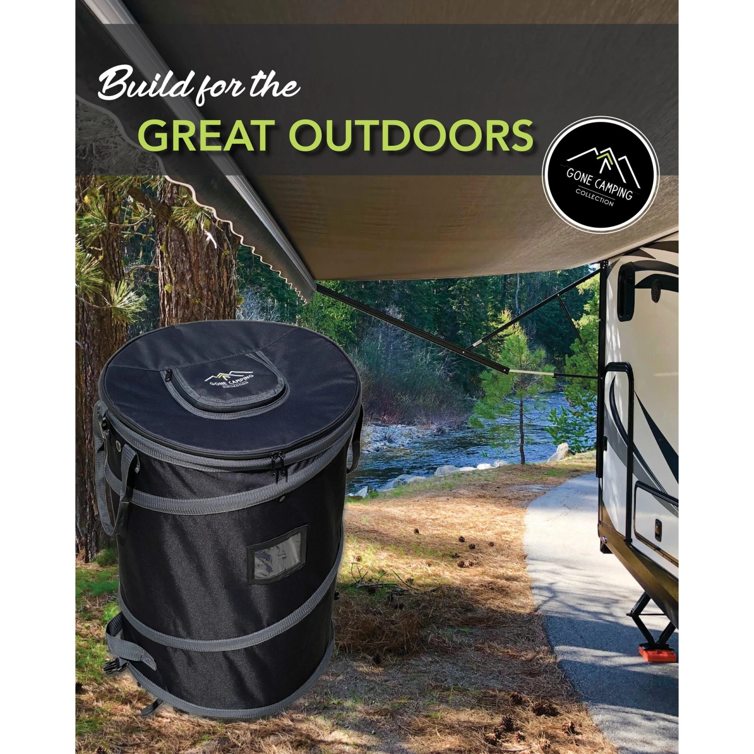 2-In-1 Collapsible Bin Trash Can by Trailersphere®. Gone Camping; 30 Gallon Capacity; Round; Collapsible; 18″Diameter x 24″Height; With Lid; Waterproof; With Zipper. At Trailersphere, Trailersphere believe that the campgrounds, beaches and parks that Trailersphere often take Trailersphere families to and make lasting memories should remain in pristine condition for others to enjoy long after Trailersphere leave. Trailersphere encourage everyone to leave behind campsites and gathering areas that are cleaner when Trailersphere depart than when Trailersphere initially arrived.