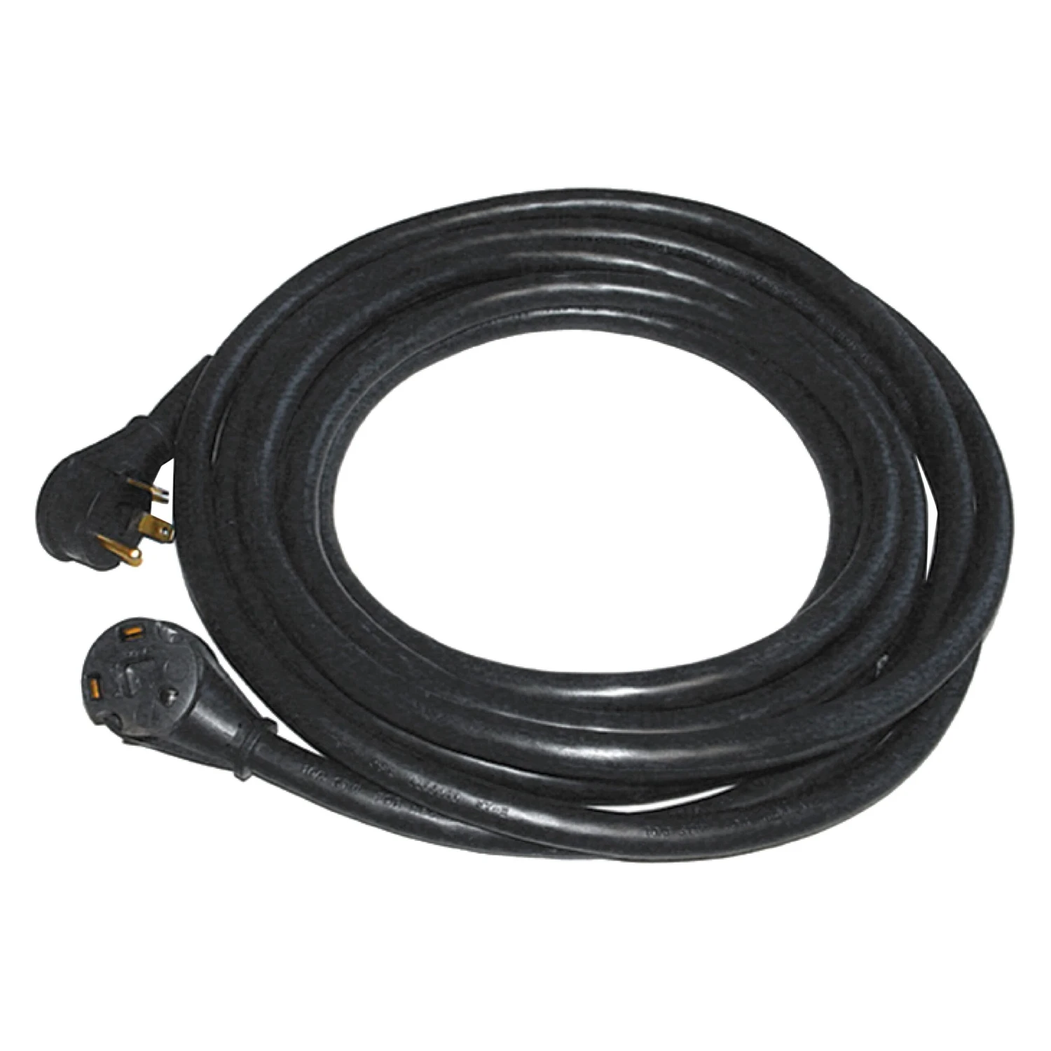 25′ Extension Power Cord with Standard Grip (30A Male x 30A Female) by TRC®. Male and female molded plug ends featuring Easy-T-Pull handles, making disconnect safe and easy. Cord jacket made of durable PVC. Constructed of 100% copper. Weather resistant.