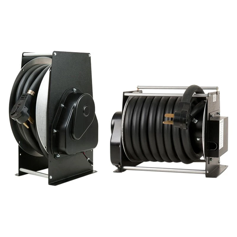 Shoreline Cord and Hose Reels are designed and manufactured for the RV and Marine Industries. We offer a complete line of reels for connecting vehicles to utility services. Power reels to take the power to the vehicle, power reels to take power from the vehicle, hose reels to take drinking water to the vehicle and hose reels to take the black/gray water from the vehicle. All Reels operate in the same manner. The power cord or hose free spools off the reel. Then, by the push of a button, the reel’s 12 VDC motor retrieves the cord or hose easily. For hand crank models simply turn the handle to pull in the cord or hose.