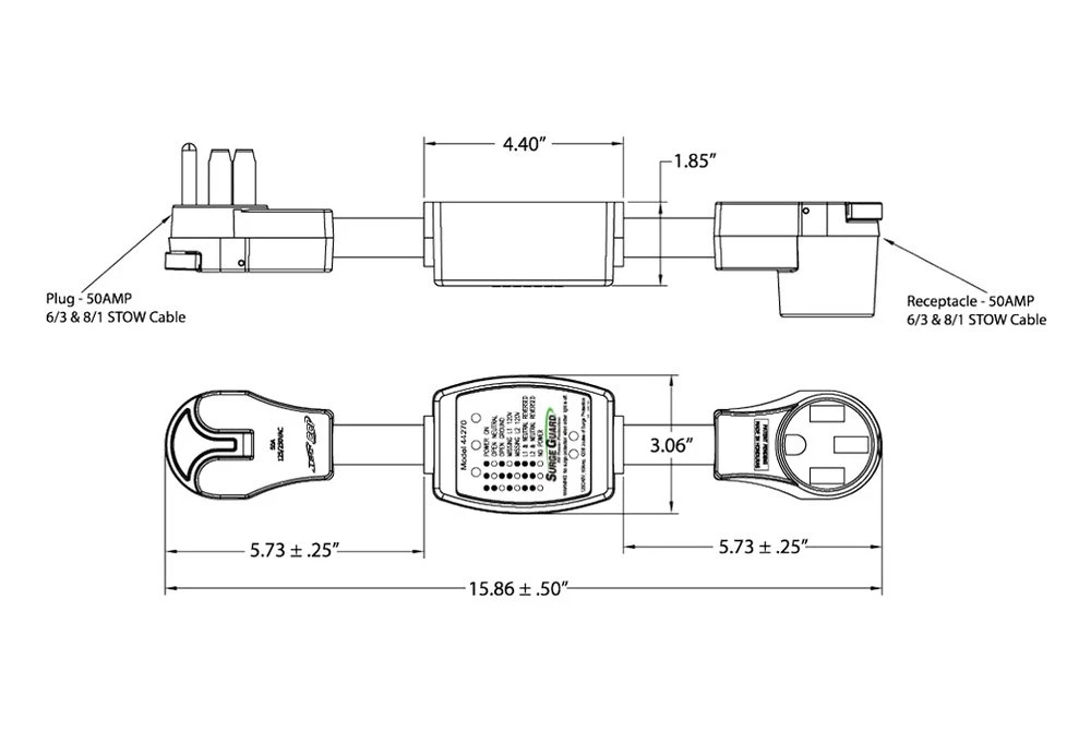Surge Guard™ 50A Straight Male x 50A Straight Female Surge Protection Dogbone Power Adapter with Standard Grip by TRC®. 1 Piece. This product is made of high-quality materials to serve you for years to come. Designed using state-of-the-art technology and with customers in mind. It will meet your needs and deliver great quality at an affordable cost.