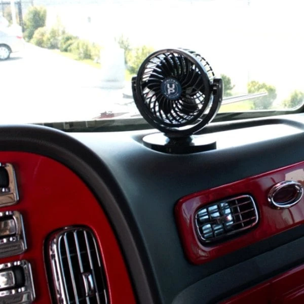 - Complete and ready to install in cars, trucks, vans, motor homes, boat or recreation vehicles 360 degree rotation, universal positioning Improve vehicle ventilation, air circulation, and window de-misting Easy installation, double sided tape included Standard cigarette light plug with fuse inside