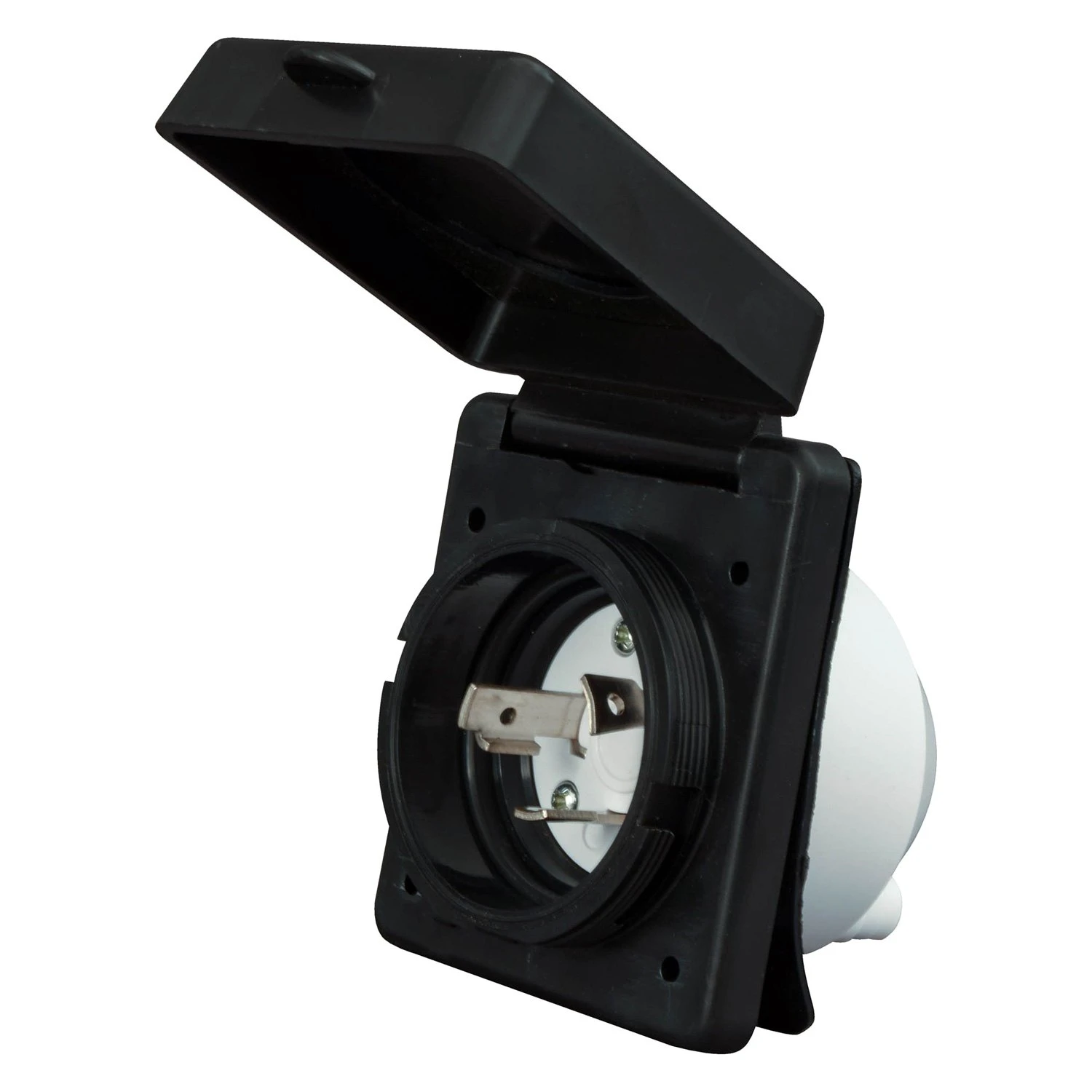 Mighty Cord Series 30A Locking Square Outdoor Power Inlet (A10-30INBKVP) by Valterra®. 1 Piece. The product is intended to ensure a safe and efficient power supply from the outside of your camper. It’s made with expertise from dependable, top-grade materials and designed with high precision. The product ensures a high level of quality and guarantees long, reliable service. Plus, it’s offered at a wallet-friendly price.