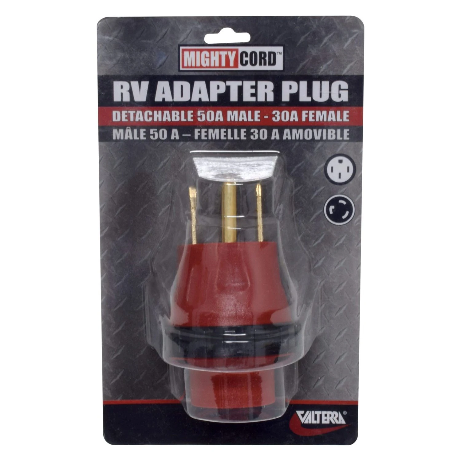 Mighty Cord™ Power Cord Adapter (50A Straight Male x 30A Locking Female) (A10-5030DAVP) by Valterra®. This product is meant to keep you charged with power and make your campering a safer and more comfortable experience. Developed with accuracy and modern technologies, it delivers high functionality. This product will help you enjoy almost like-home convenience. It ensures to deliver optimum performance, high reliability, and dependable, lasting service.
