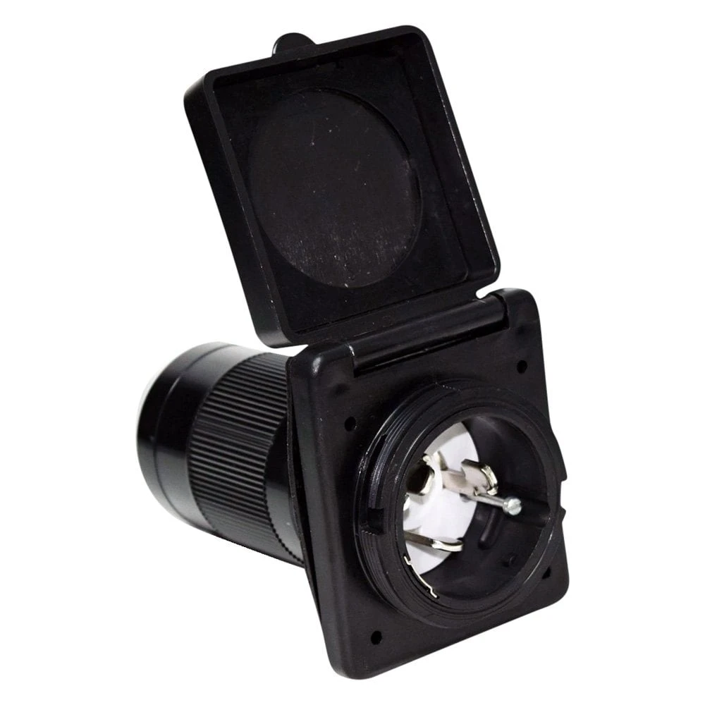 Mighty Cord Series 50A Locking Square Outdoor Power Inlet (A10-50INBKVP) by Valterra®. 1 Piece. The product is intended to ensure a safe and efficient power supply from the outside of your camper. It’s made with expertise from dependable, top-grade materials and designed with high precision. The product ensures a high level of quality and guarantees long, reliable service. Plus, it’s offered at a wallet-friendly price.