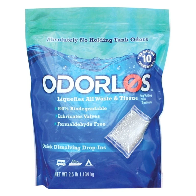 Odorlos™ 10 gal. Holding Tank Treatment (10 Pieces) (V77020) by Valterra®. When added to holding tanks, Odorlos provides the naturally occurring bacteria with a continuous supply of the best alternative energy source to pure oxygen – nitrates. This eliminates the need for bacteria to target sulfate for energy, and the result is no holding tank odors.