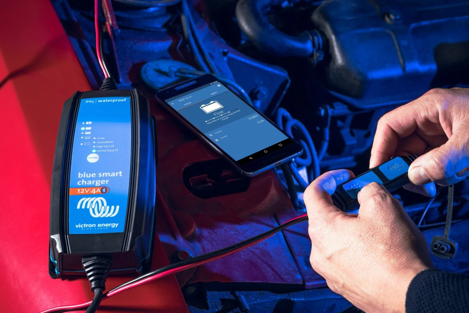 Blue Smart IP65™ 12 V Portable Battery Charger by Victron Energy®. The Blue Smart IP65 Charger is the new professional battery charger with built-in bluetooth. The Blue Smart IP65 Charger can be used on devices in your workshop and on motor vehicles, such as (classic) cars; motorbikes; boats and camper-vans. Imagine a situation when your battery is dead and you are stuck somewhere on the road. A high-performance engine starter is an essential tool to have at hand in emergency situations, while an efficient battery charger will help you fix the problem of a flat battery in a few hours when there is no rush. Get these premium tools and feel confident to start your vehicle, whatever the situation is.