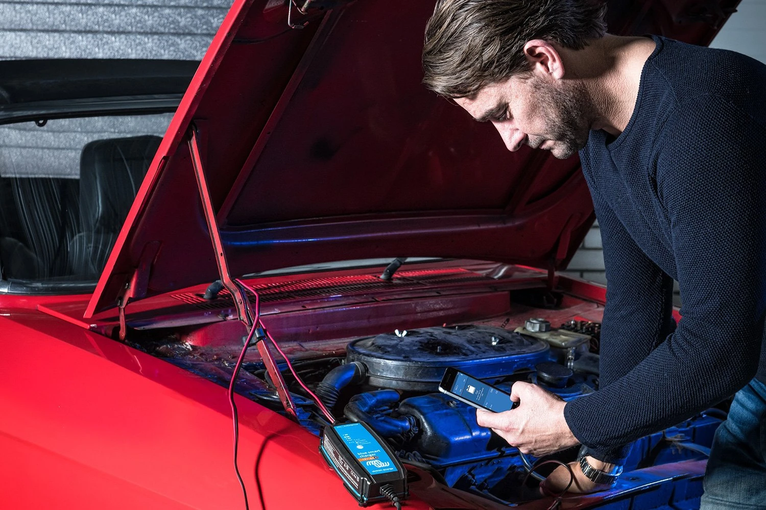 Blue Smart IP65™ 24 V Portable Battery Charger by Victron Energy®. The Blue Smart IP65 Charger is the new professional battery charger with built-in bluetooth. The Blue Smart IP65 Charger can be used on devices in your workshop and on motor vehicles, such as (classic) cars; motorbikes; boats and camper-vans. Imagine a situation when your battery is dead and you are stuck somewhere on the road. A high-performance engine starter is an essential tool to have at hand in emergency situations, while an efficient battery charger will help you fix the problem of a flat battery in a few hours when there is no rush. Get these premium tools and feel confident to start your vehicle, whatever the situation is.