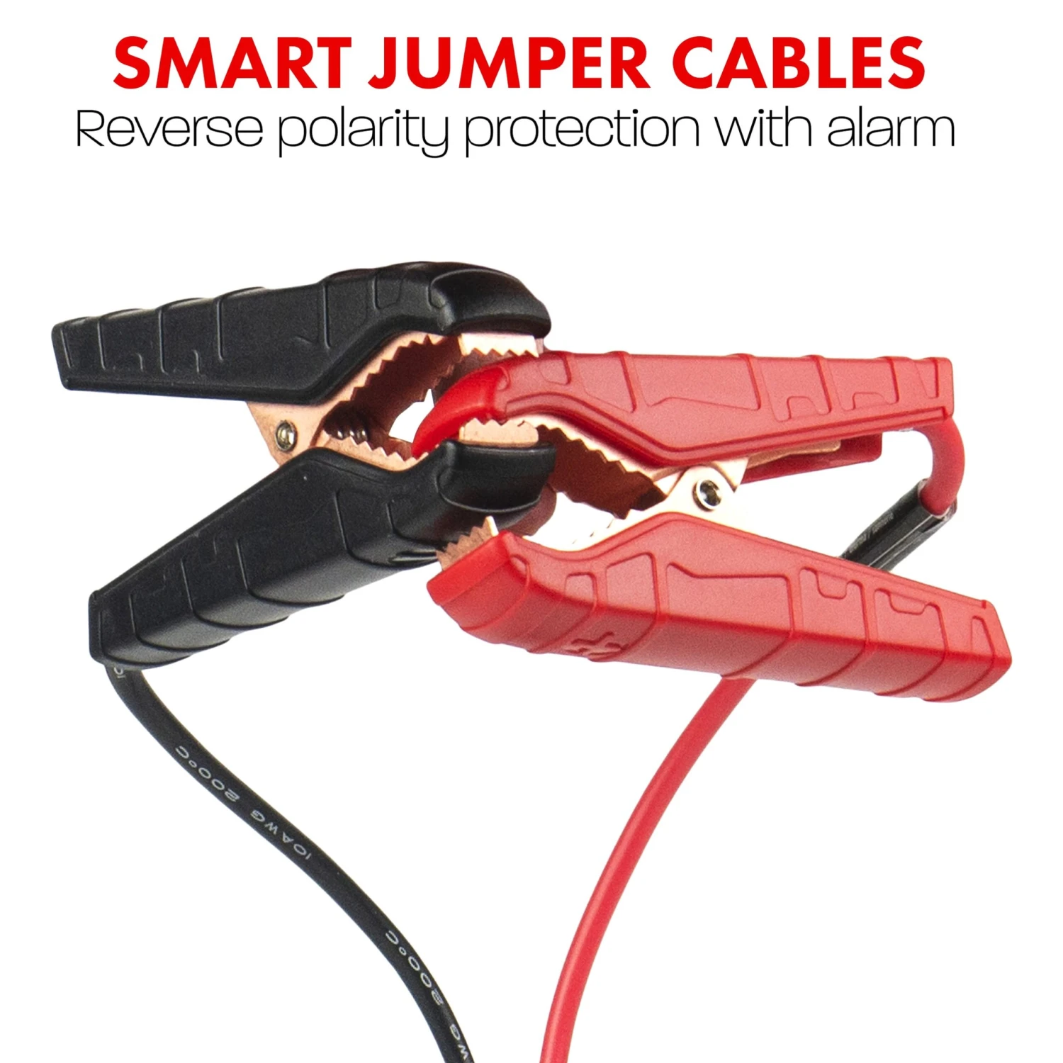 If you connect the SMART Cables to the battery incorrectly, a red light and audible tone alert you of the condition and won’t let electricity flow. When correctly connected, they illuminate green – showing that they are ready to use!