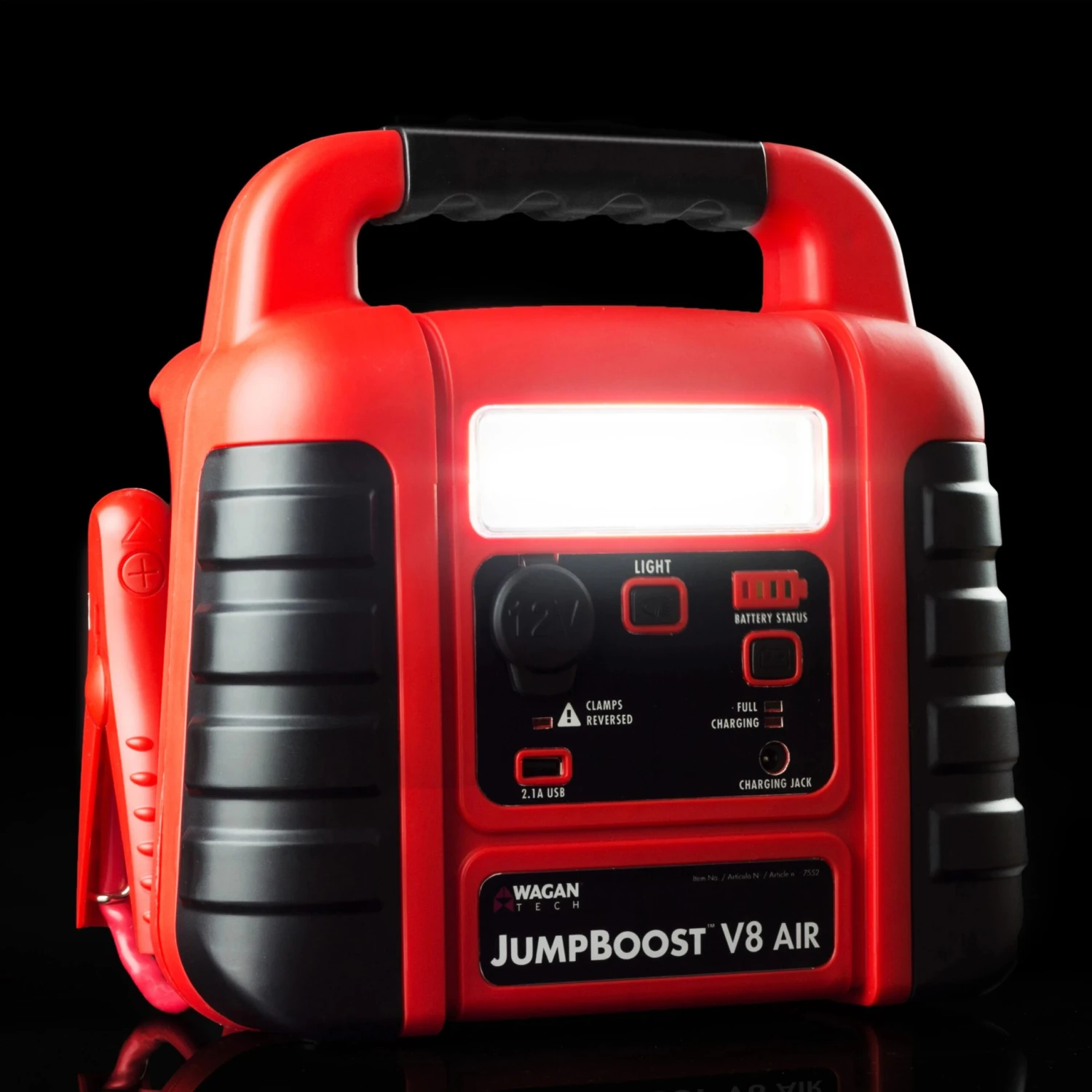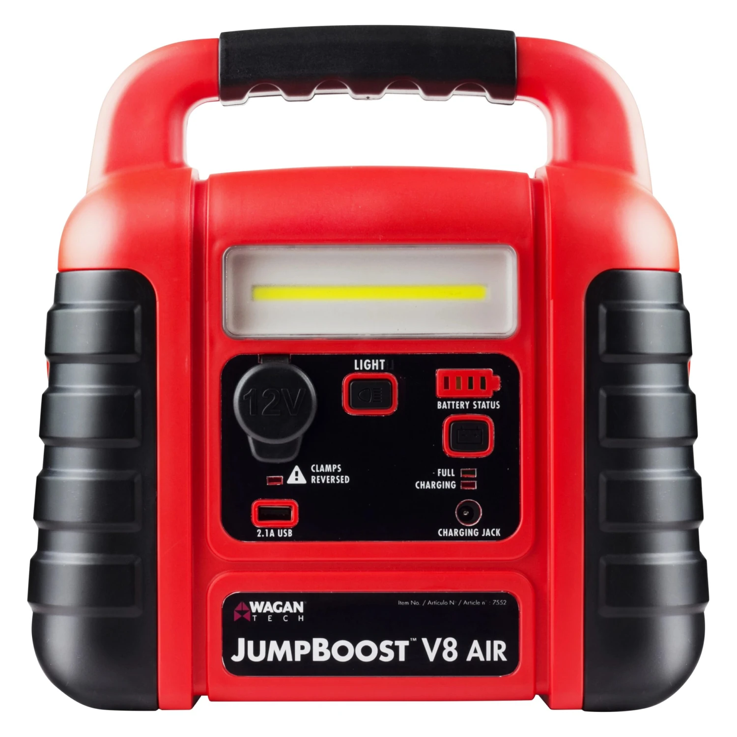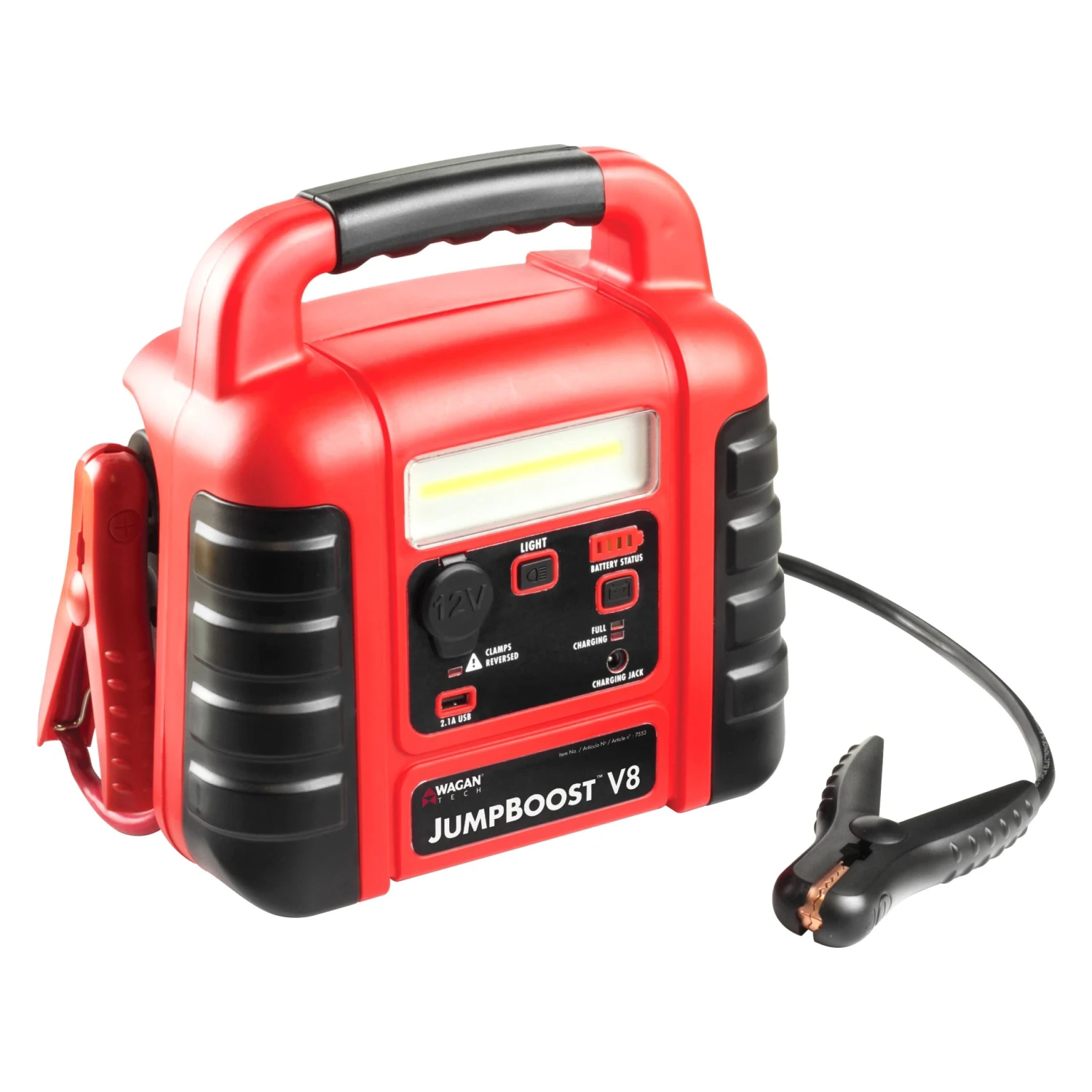 JumpBoost™ V8 12 V Portable Jump Starter by Wagan®. This top-grade product is expertly made in compliance with stringent industry standards to offer a fusion of a well-balanced design and high level of craftsmanship. Manufactured from industry-leading materials using up-to-date equipment, it ensures everlasting reliability and enduring value. This product is distinguished by total quality assurance, unsurpassed by anybody else.