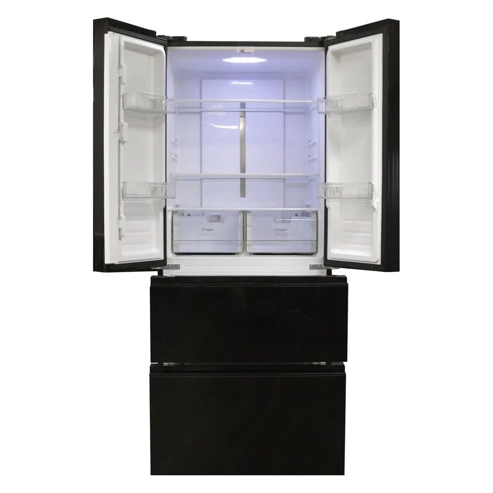 Everchill™ High-Capacity 16.2 cu ft French 4 Doors RV Refrigerator by Way Interglobal®. The Best Looking High-Capacity RV Refrigerator on the Market. Upgrade the look and capacity of your RV kitchen with the Everchill Premier Series 16.2 cu ft 110 Volt Refrigerator from Way. Store more food for your long adventures and have a sleek look that completes the aesthetics of your RV kitchen with Way Interglobal newest model featuring a black stainless steel finish.