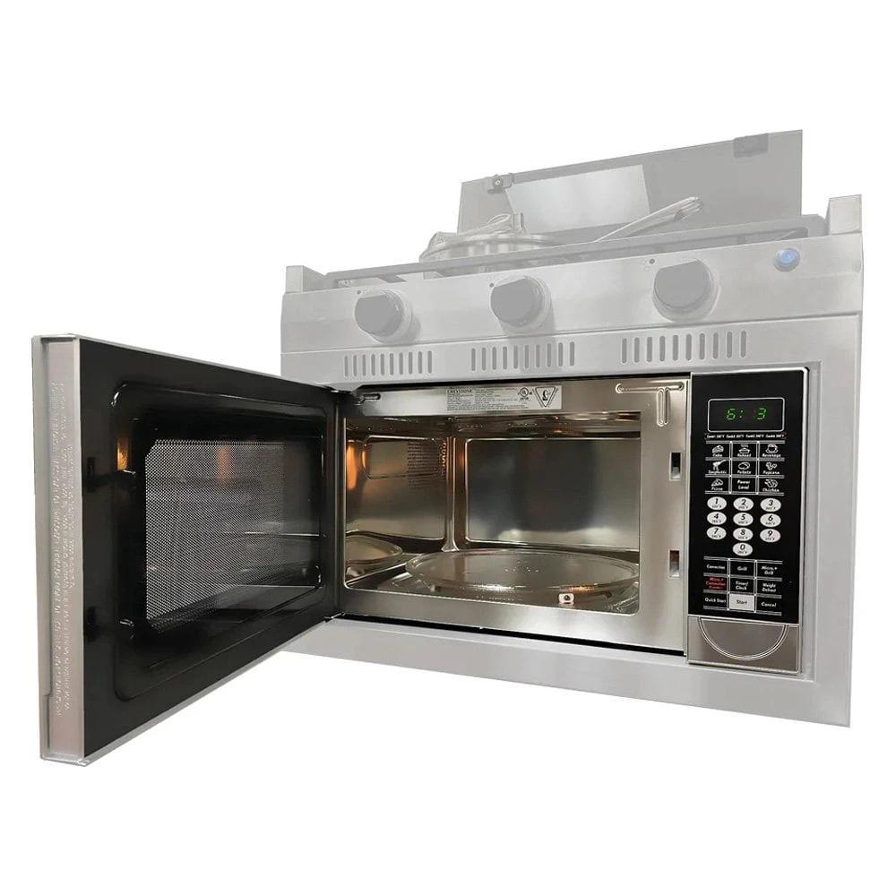 Greystone™ 1.1 cu ft Convection Microwave with Trim Kit by Way Interglobal®. Finish: Stainless Steel. Compact Microwave for RV Kitchen. Your RV kitchen isn’t complete without a convenient microwave. Not only can heat up a quick meal, but you can defrost what you intend to cook on your portable griddle or campfire, or even reheat yesterday’s leftovers. The Greystone 1.1 Cubic Foot Microwave is convenient, easy to use, and perfect for every adventure. What can take a microwave to the next level? makes a microwave even better? Adding a convection oven feature.