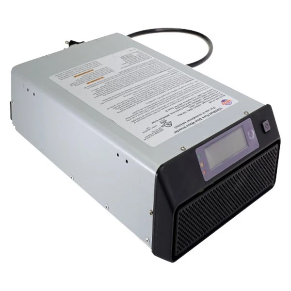 1000W 12 DC 120 AC Pure Sine Wave Power Inverter by WFCO®. Inverter WF-5110RS provides high-efficiency power at full-load conditions with safeguards that include overload protection, over-temperature protection, and short-circuit protection. The cooling fan enhances efficiency as its operation is controlled by the amount of load incurred by the inverter. FCC Class B compliance, which means that the inverter is designed not to cause interference with televisions, radios, or other signals.