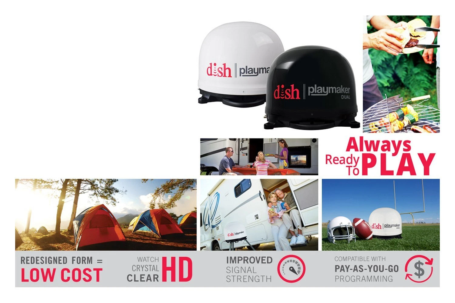 Always Ready to Play: DISH Playmaker antennas acquire DISH satellites automatically with easy setup. Redesigned with a larger, high-strength, military-grade aluminum alloy reflector for maximum durability and improved signal strength. Great for RVing, Tailgating, Camping, Vacation Homes, Hunting, Backyard BBQs, and More! Effortless Setup: The DISH Playmaker and DISH Playmaker Dual are 100% Automatic and are easy for anyone to set up in just a few minutes. Simply connect the included 25′ coax between the antenna and receiver, then connect an HDMI or coax from the receiver to the TV. Power up the receiver and TV and complete the receiver setup. You are ready to watch TV! Powered by Receiver: DISH Playmaker and DISH Playmaker Dual antennas work exclusively with DISH HD Solo receiver technology and programming. Powered via coaxial cable from the primary receiver, DISH Playmaker and DISH Playmaker Dual antennas only require a single coax connection per receiver. These portable satellite antennas are 100% automatic and run through a customized receiver interface for the fastest acquisition time. deal with Pay-As-You-Go programming: Compatible with your current DISH subscription or Pay-As-You-Go programming providing convenience of no long contracts or commitments! DISH customers can add Pay-As-You-Go programming to their home account. Mount Options: Winegard mount options for DISH Playmaker and DISH Playmaker Dual automatic portable satellite TV antennas make usage easier while also raising the antenna off of the ground for better reception. The TR-1518 Tripod Mount and RK-4000 Roof Mount Kit are built to withstand the harsh outdoor environment.