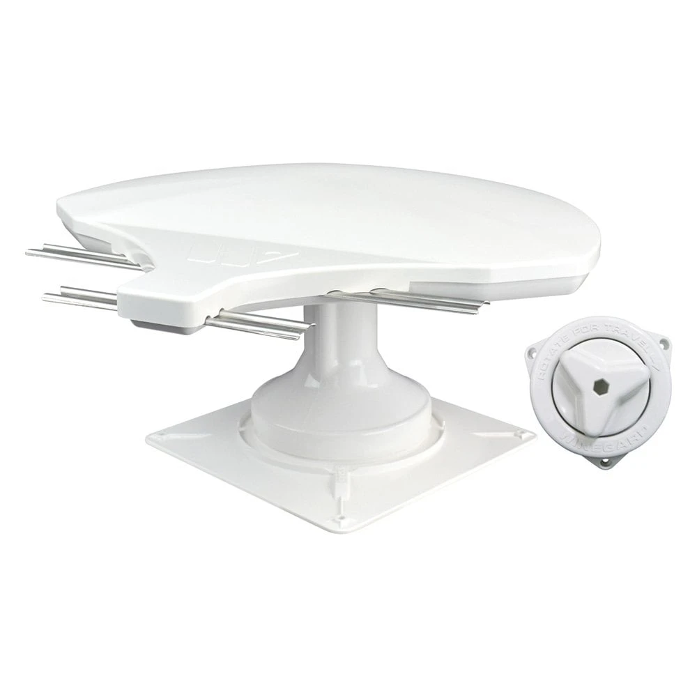 Rayzar™ Z1 White Directional Rooftop Amplified VHF/UHF Digital Antenna (RZ-6000) by Winegard®. Next generation in digital and HD broadcast TV RV antennas that delivers Crystal Clear HD quality programming and 4K UHD. Superior VHF/UHF reception allows you to catch your favorite broadcast channels anywhere you go. The Sleek and Aerodynamic design is both shorter and smaller than other antennas and complements every RV. Effortlessly rotate the antenna in the direction of the broadcast tower with no cranking required. Easily installs and replaces existing antenna unit. To receive programming, run a channel scan on your TV after setting up the antenna To keep your channel lineup up-to-date, it is a good idea to run a channel scan monthly and anytime a channel is lost.