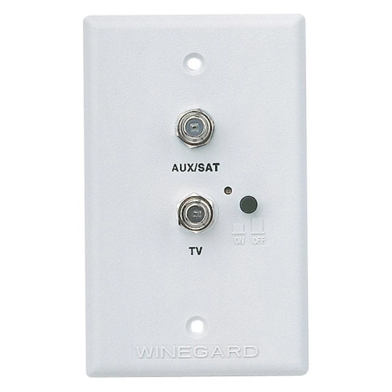 White Single TV & Satellite Wall Plate by Winegard®. This top-notch product will help you get the high-quality signal in your RV needed to enjoy maximum entertainment on your next camping trip. Built with your rugged outdoor adventures in mind, this durable product features a robust design to survive the toughest weather conditions. Thanks to high-quality craftsmanship and materials, it ensures the perfect fit and will provide years of reliable function.